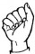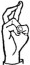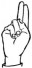 На ћирилици написано РАДНА КОВАНЏИЋ састоји се из 13 слова [?]. Исписано ћириличном једноручном азбуком за глувонеме: